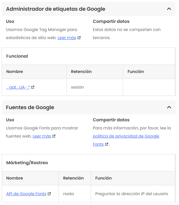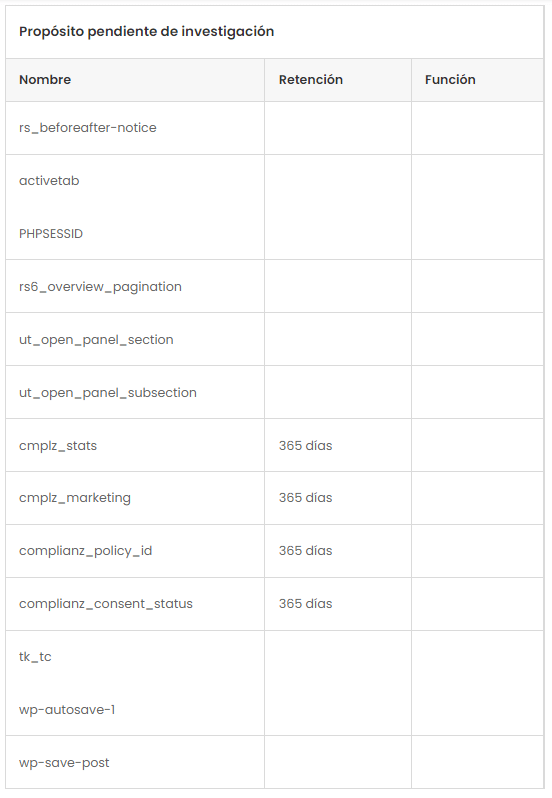 Tenga en cuenta que es posible que nuestro sitio web no funcione correctamente si se desactivan todas las cookies. Si elimina las cookies en su navegador, se colocarán nuevamente después de su consentimiento cuando visite nuestros sitios web nuevamente.