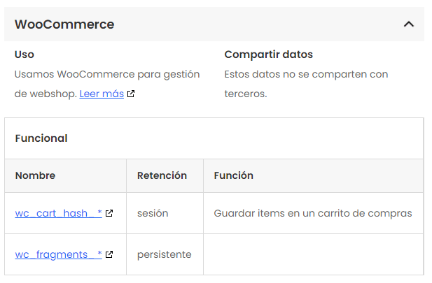 Algunas cookies garantizan que determinadas partes del sitio web funcionen correctamente y que se conozcan sus preferencias de usuario. Al colocar cookies funcionales, le facilitamos la visita a nuestro sitio web. De esta manera, no es necesario que ingrese repetidamente la misma información cuando visite nuestro sitio web y, por ejemplo, los artículos permanecen en su carrito de compras hasta que haya pagado. Podemos colocar estas cookies sin su consentimiento.